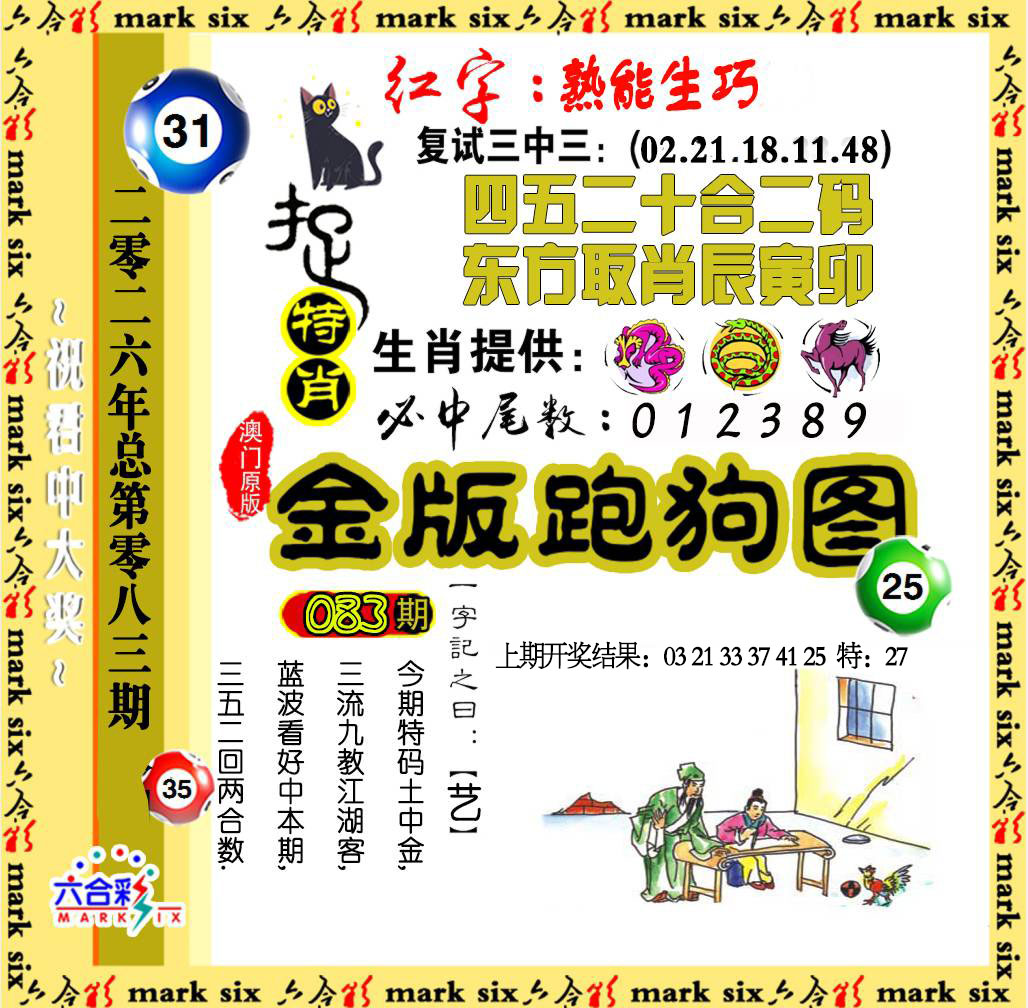 083期七肖:【马猴狗牛鸡羊蛇】 083期五肖:【马猴狗牛鸡】 083期四肖:【马猴狗牛】 083期三肖:【马猴狗】 083期一肖:【马】 083期⑩码:【01 25 11 23 09 33 30 42 22 34】 请牢记澳门惠泽网6 5 6636.COM 惊喜不断