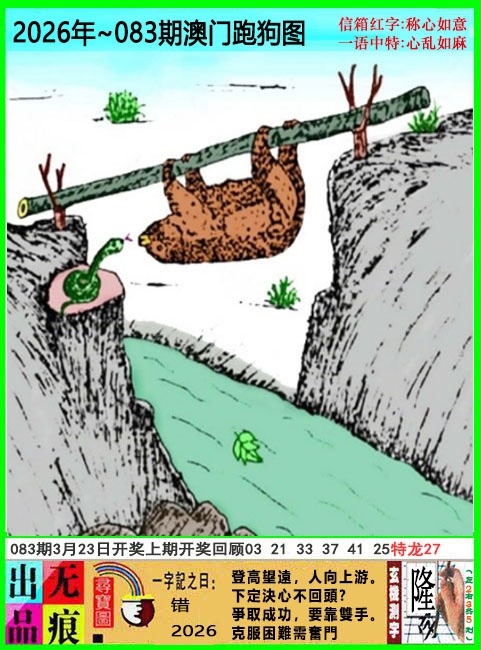 083期开奖时间2026年03月24 星期二)晚9:30开(农历二月初六 鸡冲兔)083期【欲钱买猛虎下山的生肖】